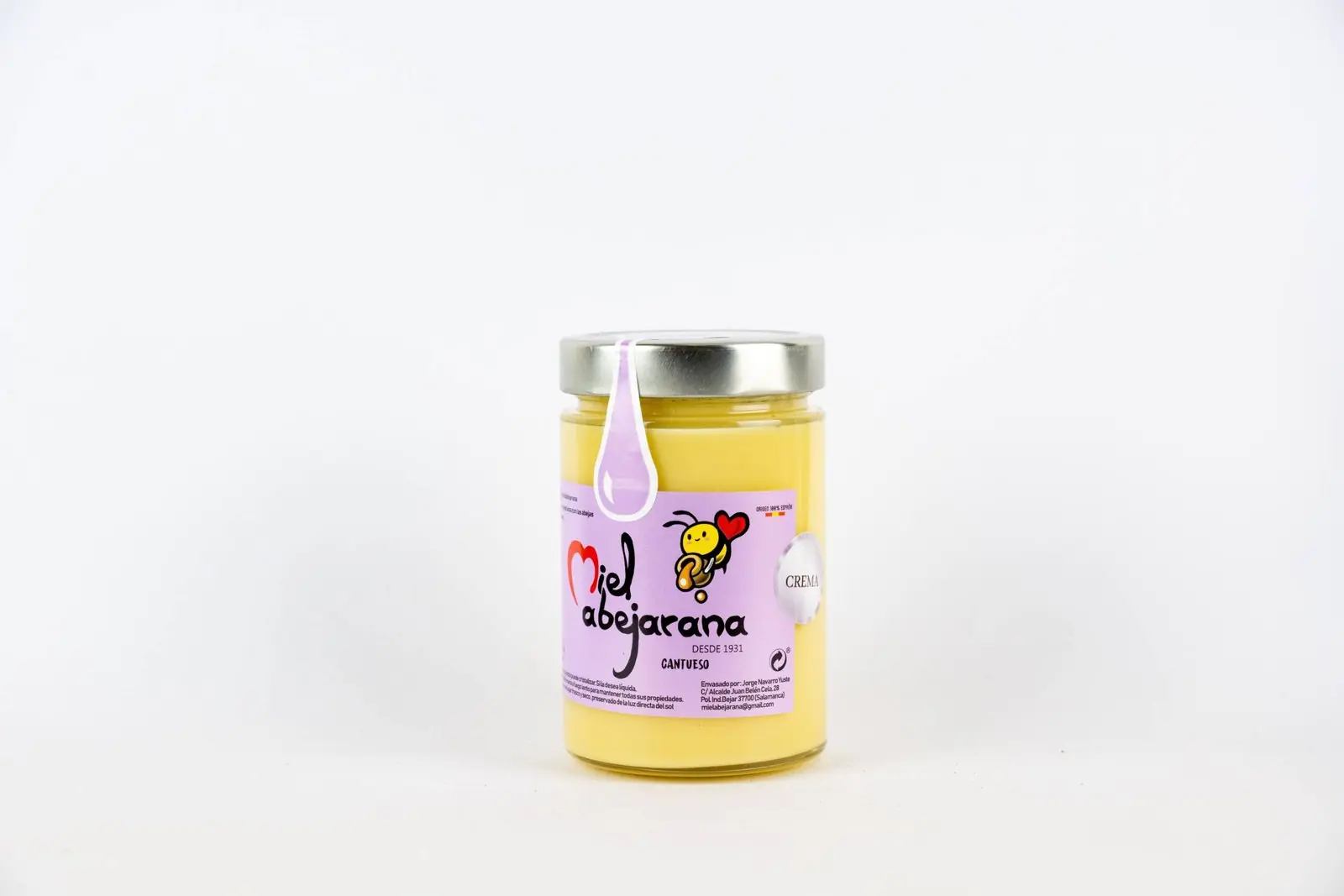 La crema de miel conserva todas las propiedades de la miel líquida, pero con una textura más manejable y sin cristalización. Ideal para untar o dar un toque gourmet.